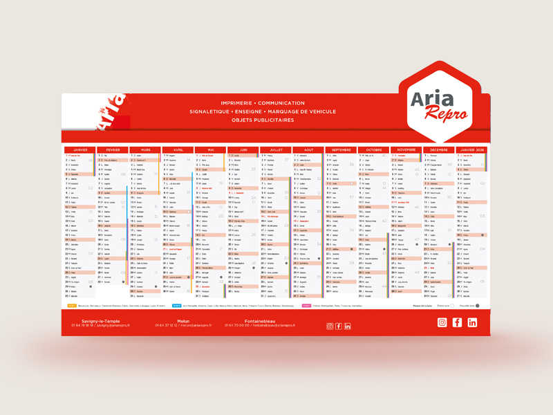 Vous souhaitez marquer l'année avec un calendrier personnalisé qui reflète l'identité de votre entreprise ? Nous vous proposons la création de calendriers sur-mesure, avec ou sans forme de découpe aux formats 50×32 cm et 65×43 cm (calendrier bancaire), parfaits pour allier esthétique et praticité